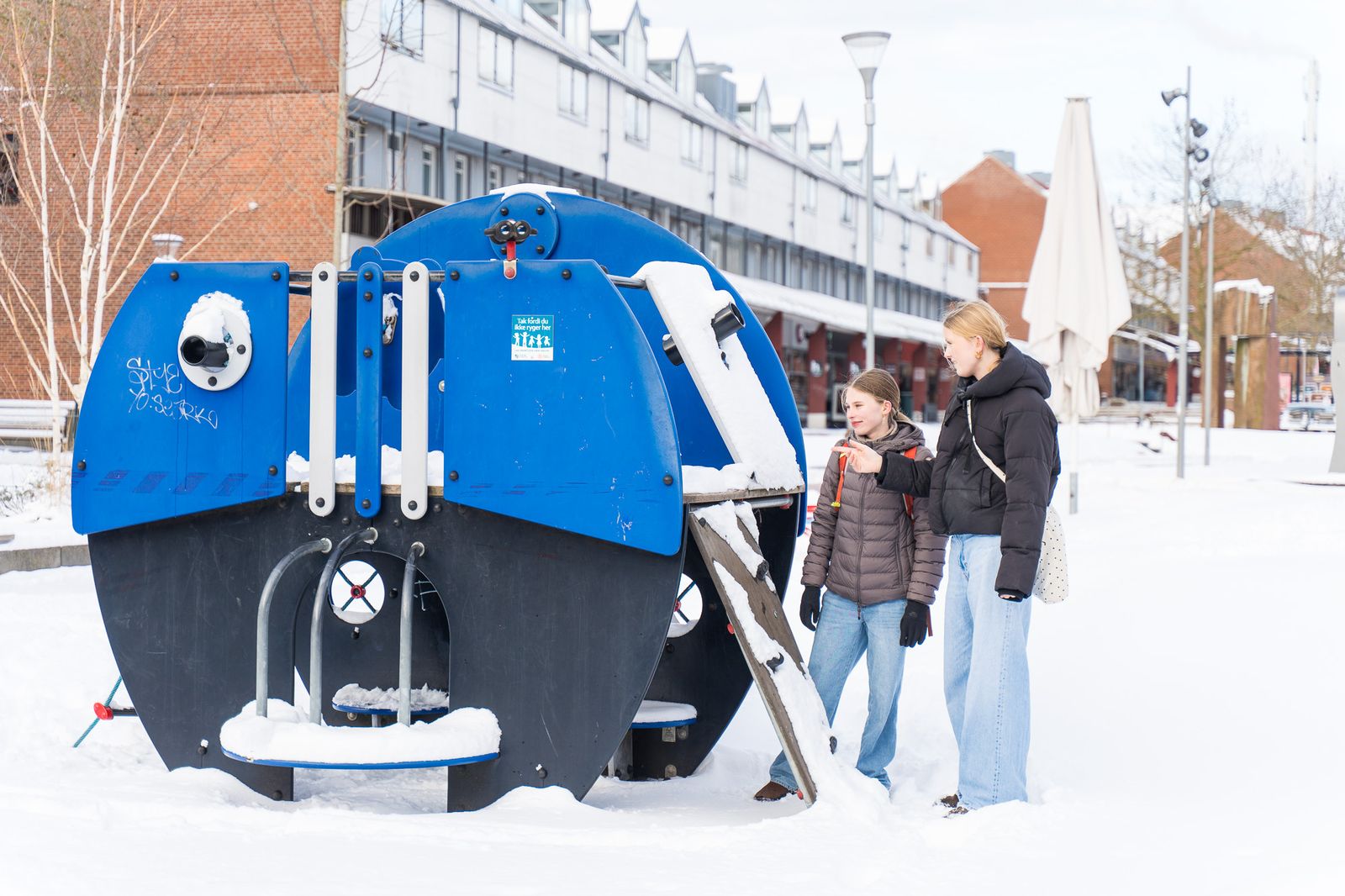 Der er ingen skilte eller synlige steder som lægger op til, at unge skal mødes og hygge. Heller ikke i nærheden af skoler, fritidstilbud osv. I det hele taget er bymidten heller ikke særlig motiverende for os unge, der kunne godt være noget, som taler til os.